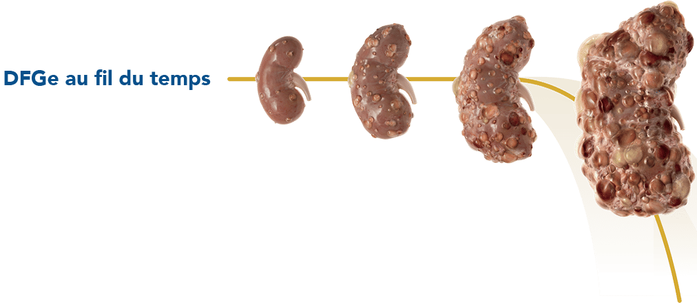 JINARC ralentit la croissance des kystes ainsi que le déclin de la fonction rénale, ce qui devrait contribuer à offrir une protection contre l’insuffisance et les lésions rénales.