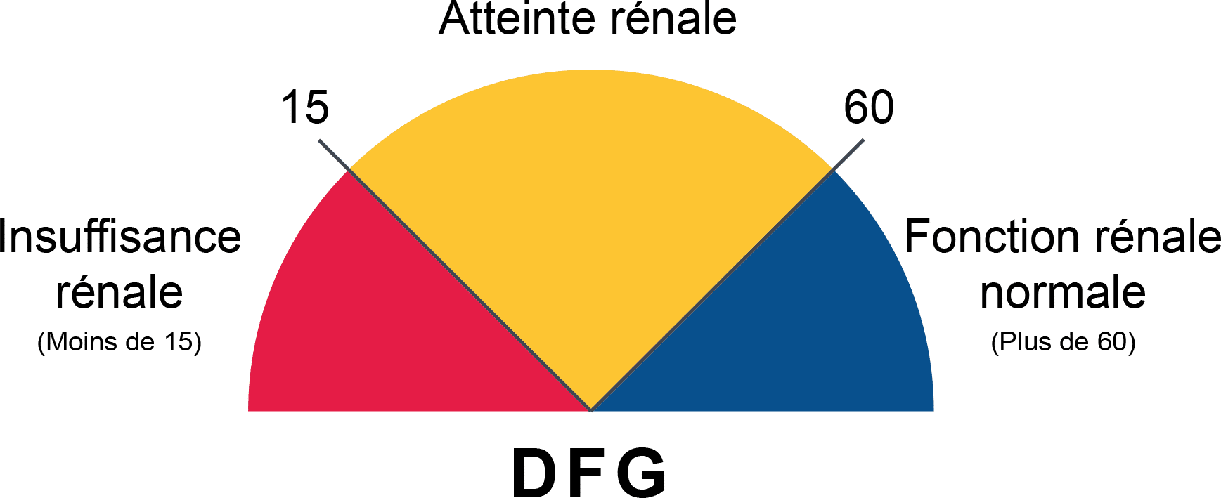 Il se peut que votre médecin procède à une analyse sanguine pour établir votre débit de filtration glomérulaire (DFG). Ce test vise à mesurer le degré de filtration du sang par les reins. La surveillance de votre DFG vous permettra, ainsi qu’à votre médecin, de déceler les tendances et les changements touchant votre état.